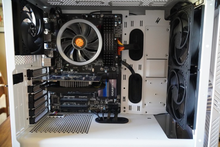 Once you are sure everything works, you can install all of the parts into the case. After you are sure everything works inside the case, you can do some cable management. Older cases don’t have as many cable management features as newer cases, but I still think it is worth a few minutes of effort.